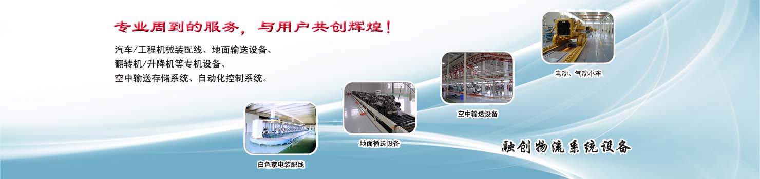 無錫市融創(chuàng)物流系統(tǒng)設(shè)備有限公司專業(yè)從事物流輸送設(shè)備、各類裝配流水線設(shè)備、各類生產(chǎn)非標(biāo)專機設(shè)備和自動化控制系統(tǒng)的專業(yè)生產(chǎn)企業(yè)。廣泛應(yīng)用于轎車、卡車、客車、各類工程機械、發(fā)動機、車橋、農(nóng)業(yè)機械、郵政、家電等行業(yè) ...... >> more >>